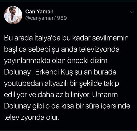 "bu arada italya'da bu kadar sevilmemin başlıca sebebi şu anda televizyonda yayınlanmakta olan önceki dizim dolunay...