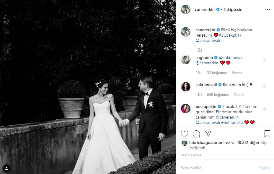 Düğün gününe ait bir fotoğrafı ınstagram sayfasında yayınlayan caner erkin, paylaşımının altına şu notu düştü: “elimi hiç bırakma her şeyim”