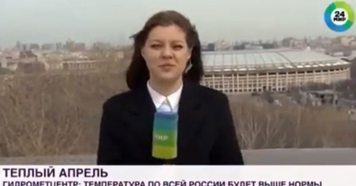 Akşam haberlerini sunan spiker canlı yayında Rus kadın muhabire bağlanıyor.