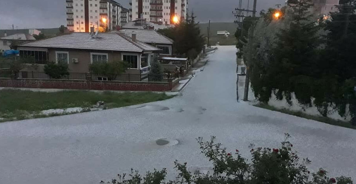 Yağmur, dolu yağışına dönerken yollar kısa bir süre içinde beyaza büründü.