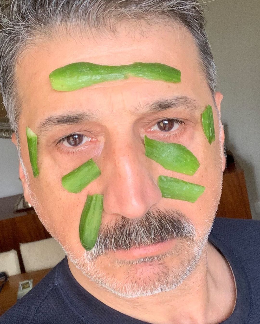 Karantina günlerinde sosyal medya paylaşımlarını hız veren cem davran, salatalık kabuklarını yüzüne yapıştırarak verdiği pozu ınstagram hesabında paylaştı.