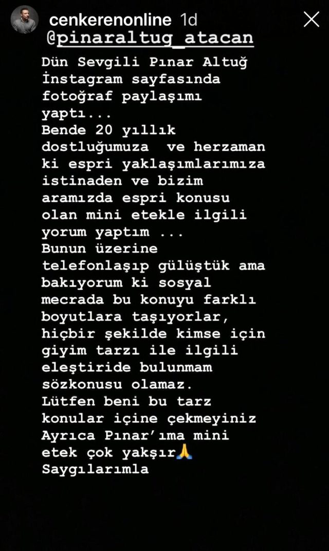 Elinde telefon, üzerinde mini etek olan altuğ'un paylaşımı takipçileri tarafından büyük beğeni alırken cenk eren'in yaptığı 'etek' yorumu olay yarattı.