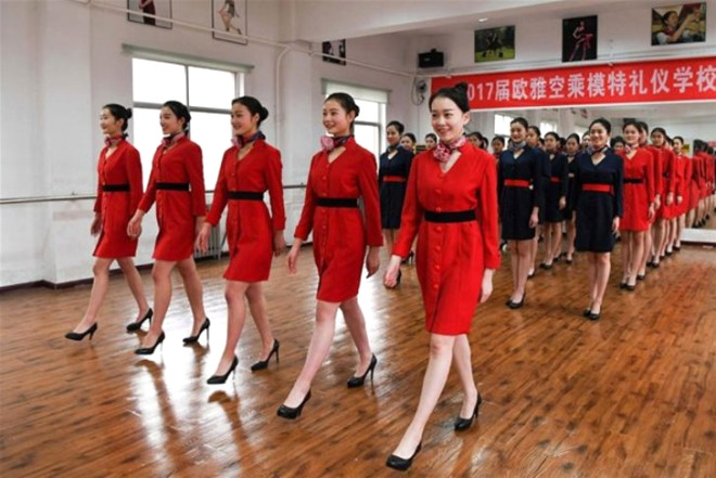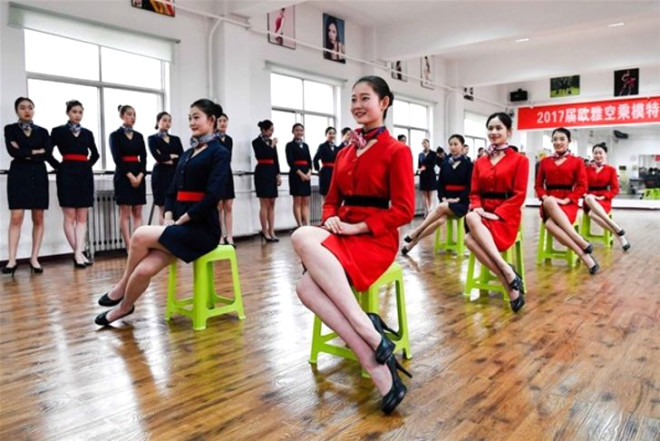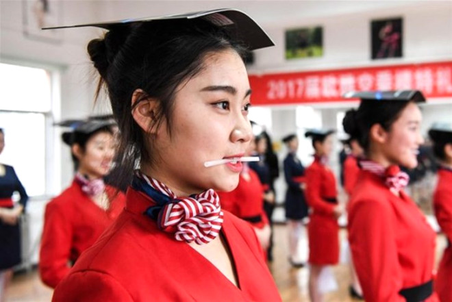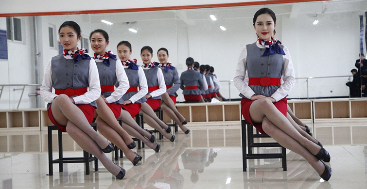 Çinli kadınların hostes olmak için aldıkları dersler sırasında ortaya çıkan kareleri sizler için derledik.