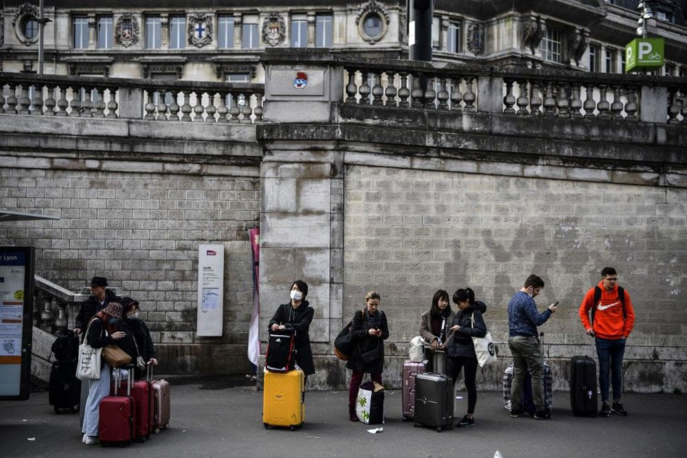 Paris, sokağa çıkma yasağına hazırlanırken, ingilizler ve öteki gezginler de içerisinde olmak üzere binlerce insan paris’ten kaçmak için havalimanı, tren ve otobüs istasyonlarına gittiler. salı günü öğleden sonra yeni katı tedbirler uygulamaya girmeden önce tren ve otobüs istasyonunda büyük kuyruklar oluşmaya başladı.