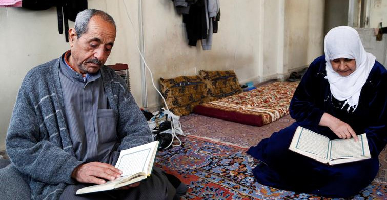 69 yaşındaki mahmud ali ve 55 yaşındaki eşi ayşe hüseyin suriye'nin hama kentindeki evlerinde kur’an-ı kerim okuyor.