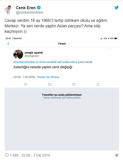 İşte cenk eren'in attığı tweete gelen tepkilerden biri…