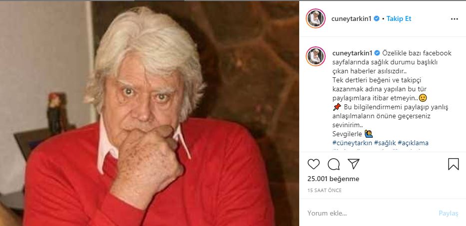 Cüneyt arkın, ınstagram hesabından bir açıklamada bulunarak hakkında çıkan iddialar hakkında açıklamada bulundu.