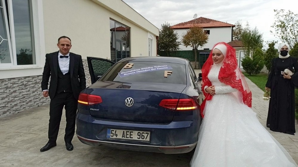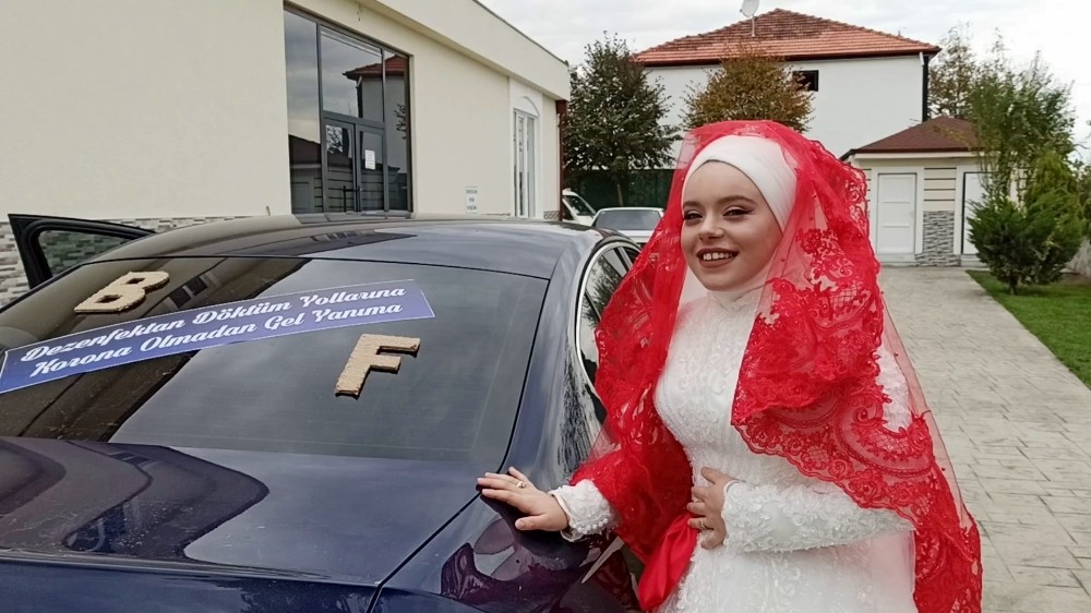 Sakarya'da bir damadın gelin arabasına yazdırdığı "dezenfektan döktüm yollarına korona olmadan gel yanıma" yazısı, gelin dahil herkesi hayretler içerisinde bıraktı.