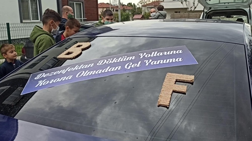 Gelin arabasına yazdırılan yazı görenlerin bir kısmını şaşırtırken bir kısmını ise gülümsetti. gelin arabasını süsleten damat ömer faruk karacan, aracın üzerine; "dezenfektan döktüm yollarına korna olmadan gel yanıma" yazısı yazarak gelini almaya gitti.