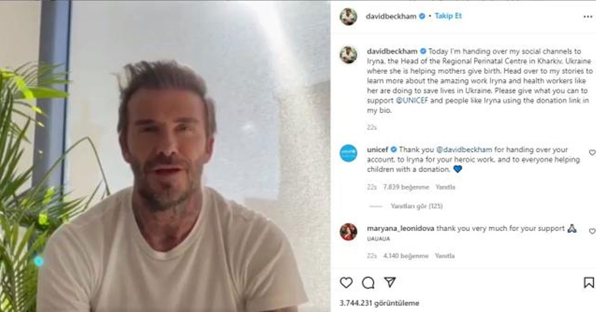 David Beckham Instagram hesabında yayınladığı mesajında, "Sosyal medya hesabımı Ukrayna'nın Kharkiv bölgesindeki Perinatal hastanesinin müdürü Irina'ya veriyorum.
