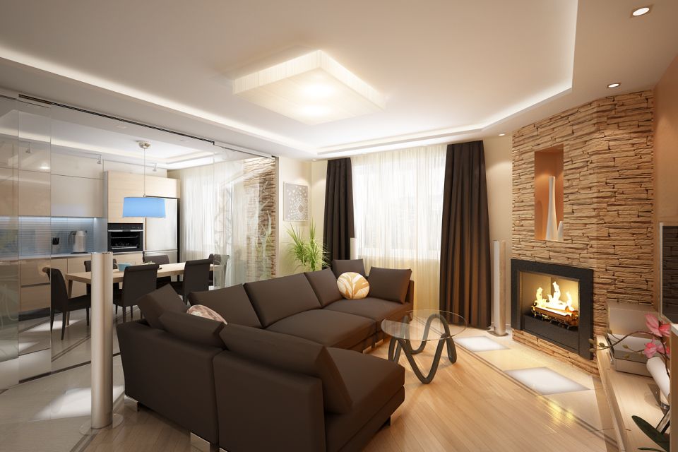 Her büyüklükteki salonda tercih edilebilir. Tasarlanan şöminenin çeşidi, salonun hangi tarzda döşendiğine bağlıdır.