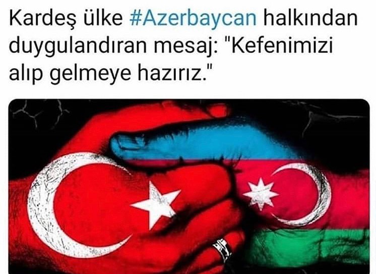 'gel de bu azerbaycan'a kurban olma… iyi ki tanıdığım güzel dostlar var orada. biz evde yemek yemeye utanırken; öpüşürken, gezerken story atanlar var… bugünkü konserimizi iptal ettik demeye bile elim varmadı insanın aklına gelmiyor bunu çok büyük meziyetmiş gibi yazmak bile istemedim.