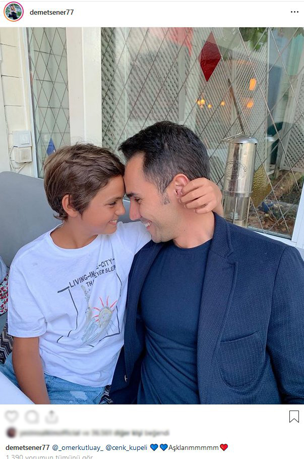 Şener, eşi cenk küpeli ile ibrahim kutluay'dan olan oğlu ömer'in samimi pozunu ınstagram hesabında paylaştı.