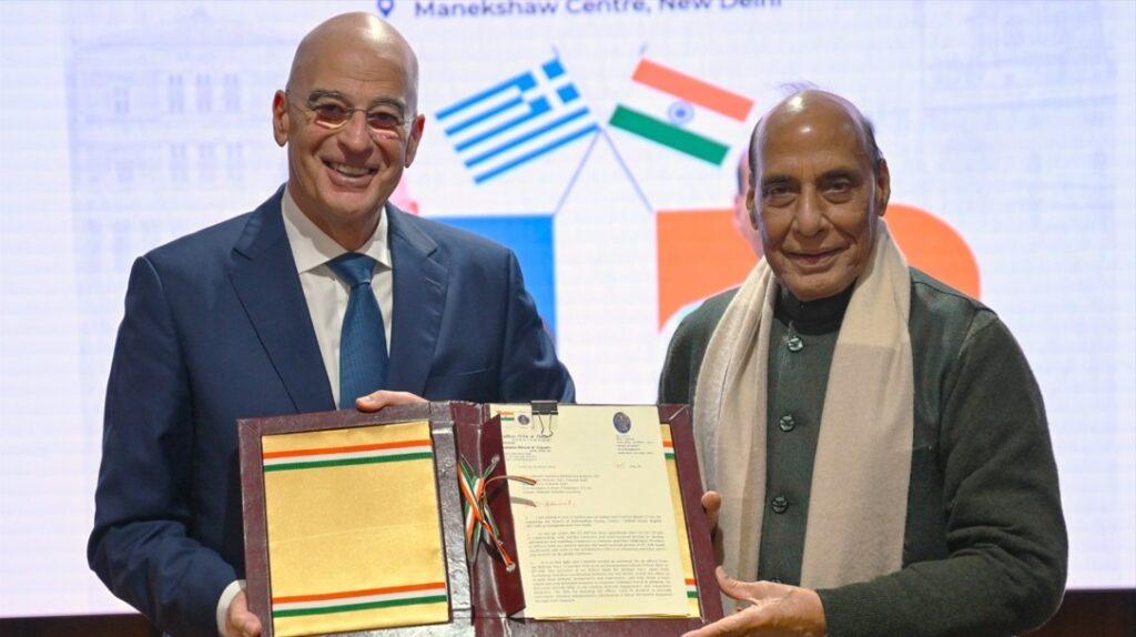 Yunanistan Savunma Bakanı Nikos Dendias, Hindistan ile ilişkilerin Yunanistan açısından stratejik ve uzun vadeli büyük bir fırsat sunduğunu, özellikle savunma sanayii, inovasyon ve ileri teknoloji alanlarında iki ülke arasında önemli iş birliği imkânları bulunduğunu vurguladı.