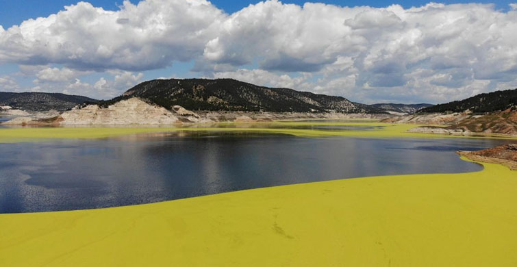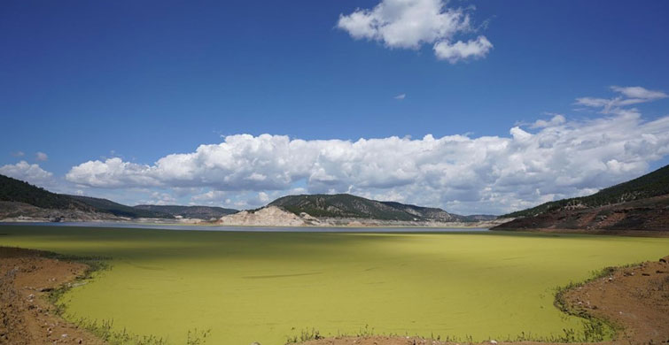 Denizli'nin Güney ilçesinin Adıgüzel Barajı göleti üstünde oluşan yeşil tabaka, görselliğiyle merak uyandırırken, ne olduğu bilinmediği için bölge sakinlerini de huzursuz etti. Adıgüzeller Mahallesi Muhtarı Onur Palaz, "Hayatımızda böyle bir şeyle ilk kez karşılaştık. Kötü bir kokusu var. Yetkililerin araştırmasını istiyoruz" diye konuştu. Konuyla alakalı açıklamada bulunan Pamukkale Üniversitesi (PAÜ) Biyoloji Bölümü Öğretim Üyesi Prof. Dr. Mustafa Duran da baraj göletinde alg patlaması olduğunu belirtti.
