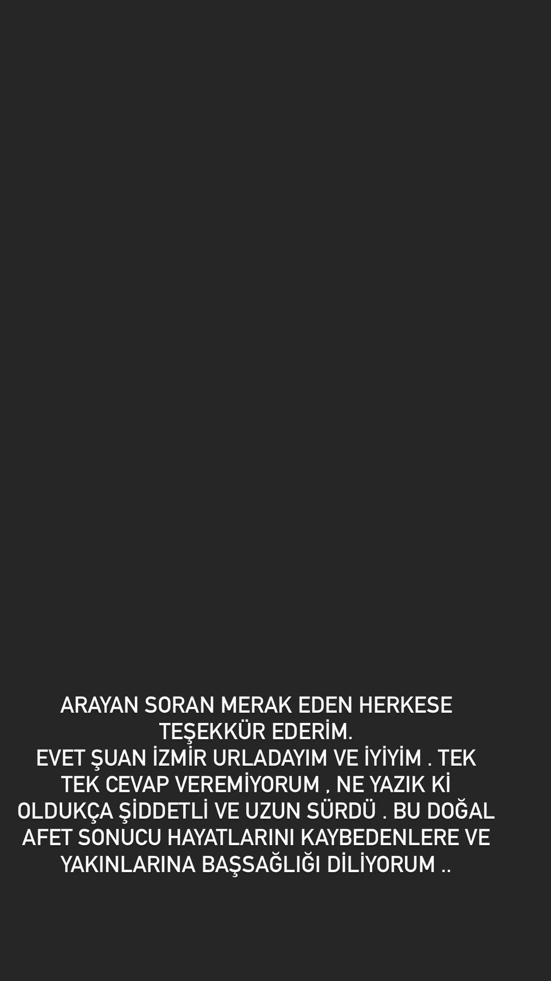 Sosyal medya hesabından bir açıklama yapan erçer, ‘arayan soran herkese çok teşekkür ederim. evet şu an izmir urla'dayım. deprem ne yazık ki oldukça şiddetli ve uzun sürdü. sağlık durumum iyi’ ifadelerini kullandı.