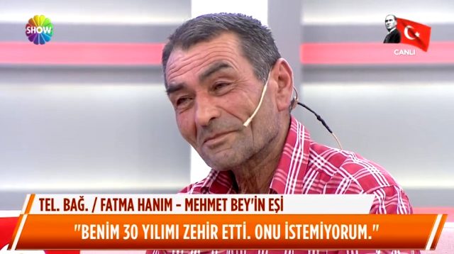 Yozgat'ın Sarıkaya ilçesinde yaşayan 53 yaşındaki Mehmet Büyükkılıç, show tv'de yayınlanan didem Arslan Yılmaz'la vazgeçme programına konuk oldu. Mehmet Büyükkılıç, geçtiğimiz yıl Yozgat'ta tarlada fasulye dikerken eşi Fatma Büyükkılıç ile tartışma yaşadıklarını, eşine bir tokat attığını ve 4 çocuk annesi eşinin İstanbul'da yaşayan oğlu tarafından alınıp kendisinden uzaklaştırıldığını anlattı.