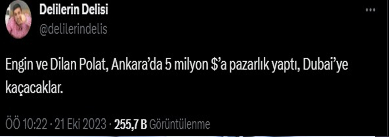 Yakut, ‘’Engin ve Dilan Polat, Ankara’da 5 milyon $’a pazarlık yaptı. Dubai’ye kaçacaklar’’ ifadelerini kullandı.