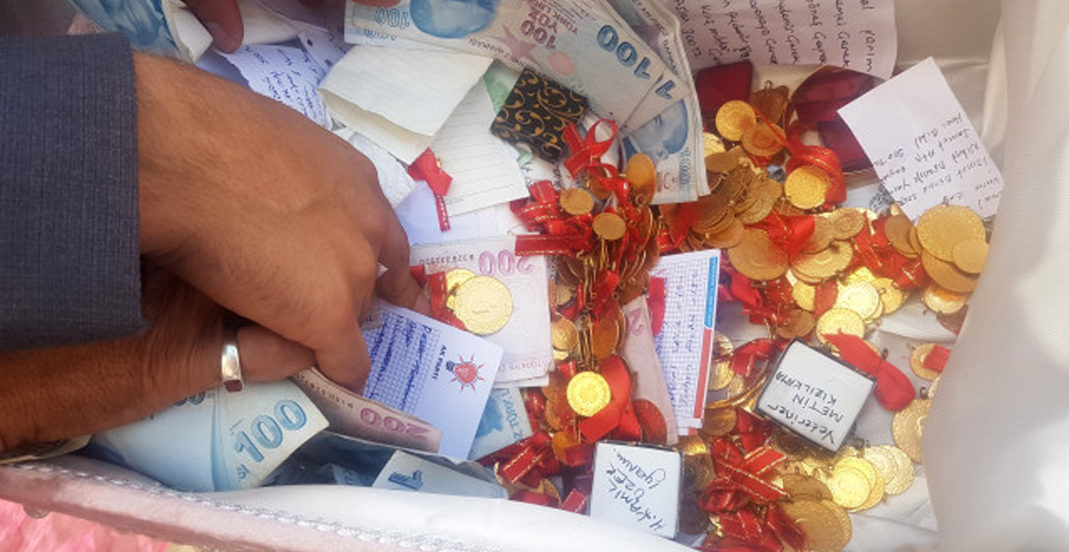 Güncel altın fiyatlarına göre düğünde takılan altınların toplam 1 milyon TL etti. Güncel fiyatlara göre; gram altın 487 lira, çeyrek altın 791 lira, yarım altın 1,581 lira, reşat altın ise 3 bin 181 lira. Cumhuriyet altınının güncel fiyatı ise 3 bin 149 liraya ulaştı.