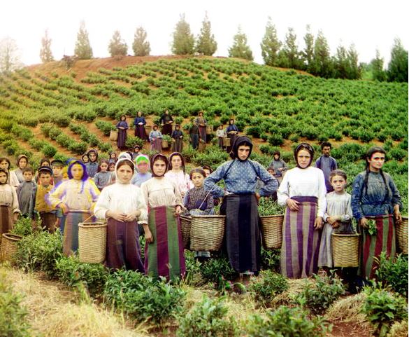 1910 gürcistan'daki bu kadınlar çay toplama için hazırlanıyorlar.