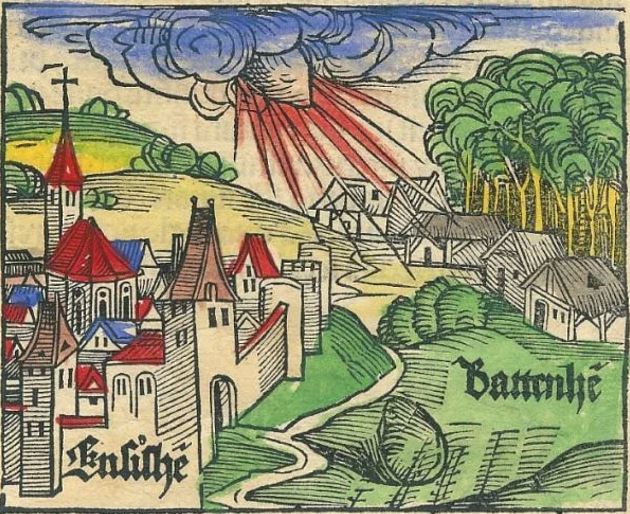 1492'de, kolomb kızılderililerle birlikteyken, fransız ensisheim kasabası yakınlarında devasa bir gök taşı çöktü. insanlar bunun bir gök taşı olduğunu bilmeden yukarıdan gelen bir işaret olduğuna inandılar ve bu kayayı bağladılar.