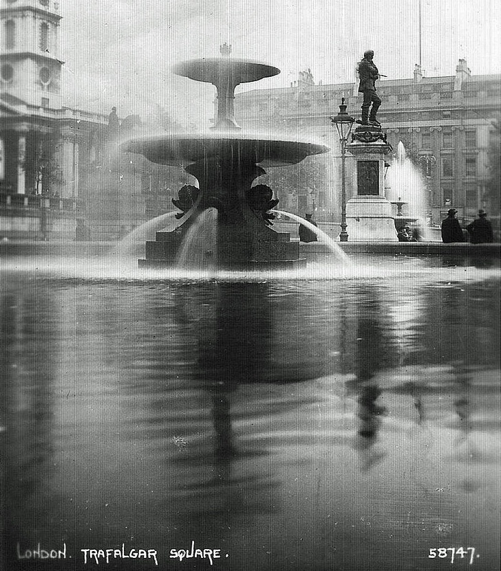 Batı çeşmesinden doğuya bakan trafalgar meydanı'nın yakın bir görünümü.bu orijinal çeşmeler 1940'ların sonlarında değiştirildi. - 1924