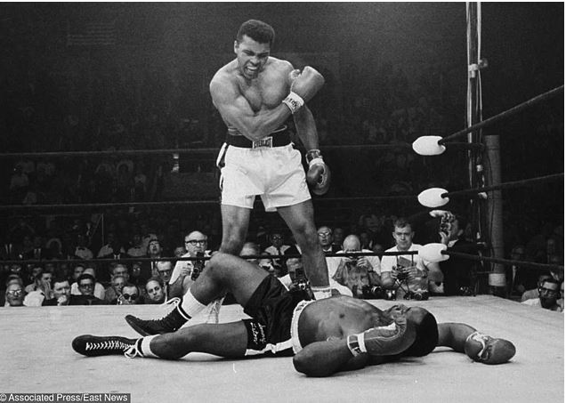 muhammed ali kalkıp dövüşmek için sonny liston'a bağırıyor. - 1965