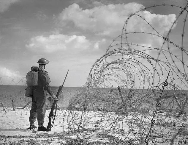 Güney ingiltere'de bir plajda ayakta duran bir bekçi - 1940