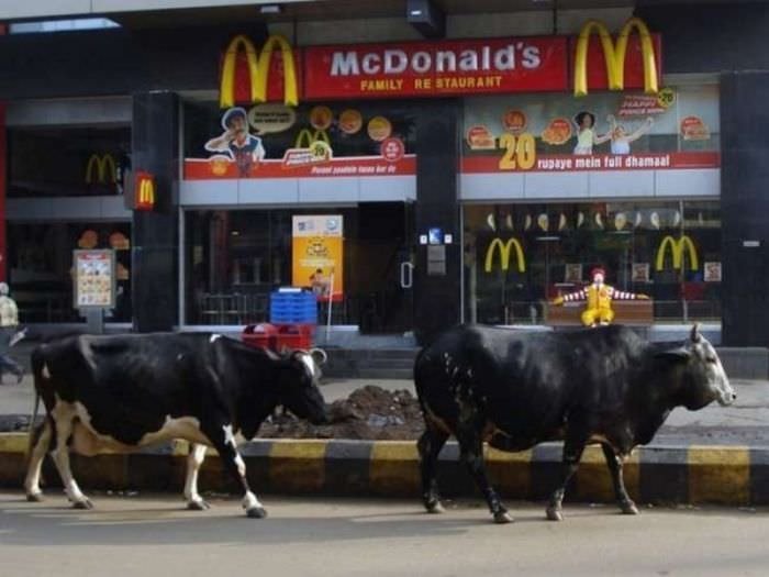 İnekler hindistan'da yedi anneden biri olarak kabul edilir, iyi şansın sembolü olarak gördüklerinden ülkede rahatça dolaşabilirler.