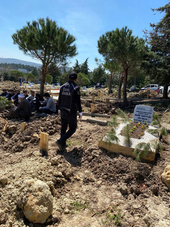Coronavirüs nedeniyle cenazeye toplu katılım gerçekleştirilemedi. ebru şallı ve ailesi gazetecilerin görüntü almaması için çok sayıda güvenlik görevlisine talimat verdi.