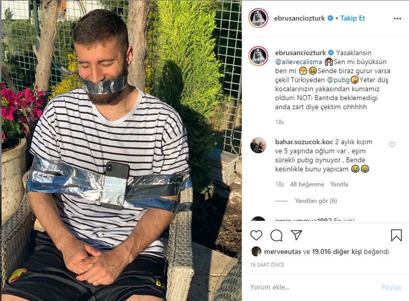 Eşinin sürekli oyun oynamasından şikayetçi olan 6 aylık hamile ebru şancı kendince bir çözüm buldu ve o anları sosyal medya hesabından paylaştı.