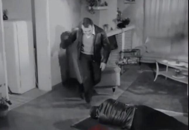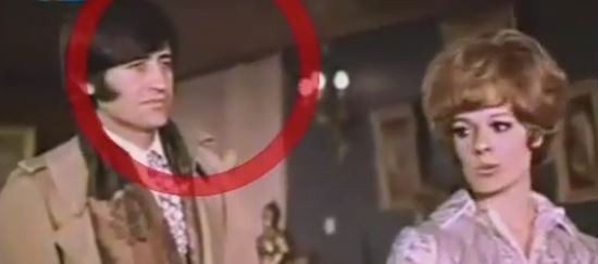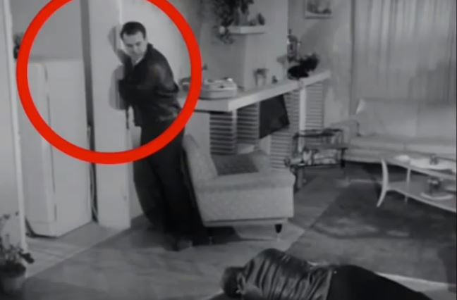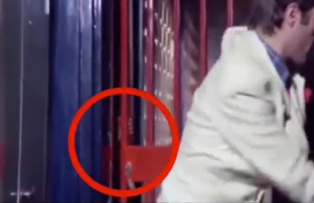 Kemal Sunal'ın kapıya tekme attığı sırada bir set çalışanının eli gözüküyor.