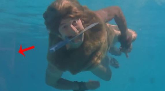 Havuzda çekilen deniz sahnesinde merdivenler gözüküyor.
