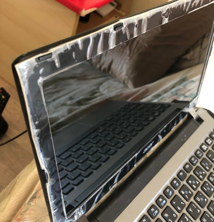 “babam bu dizüstü bilgisayarı 4 yıl boyunca kullanıyor ve plastik koruyucuları çıkarmayı reddediyor.”