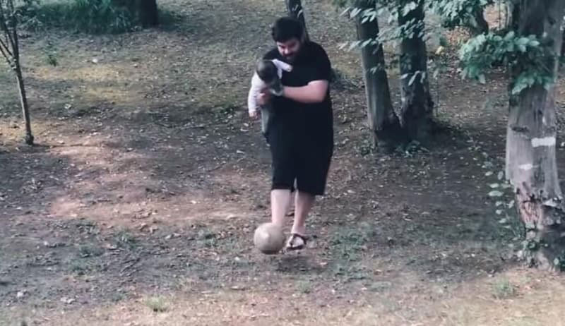 Berfu kuzey’i kucağına alıp topa vurmaya başladı. kuzey de inanılmaz eğlendi bu durumdan. ben de kendi kendime ‘oğlumuz futbolu, ilk top sürüşünü babasından görmeli’ dedim. kuzey'i kucağıma aldım. topa vurdum, oraya yetişemedim.