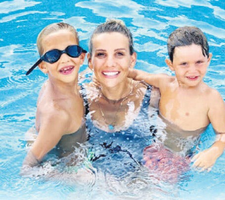 Güzel sunucunun çocuklarıyla verdiği havuz pozu çok sayıda beğeni aldı.