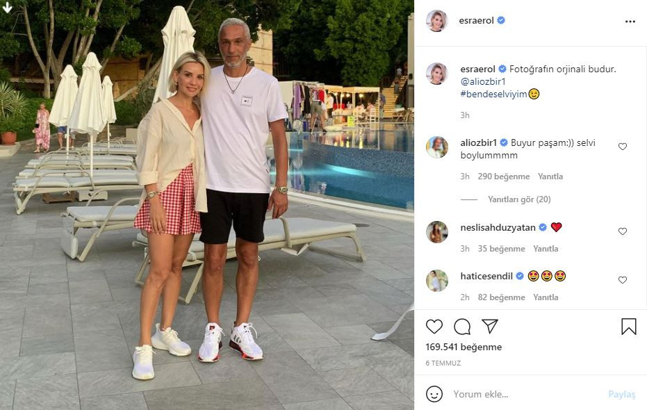 Ünlü sunucu geçtiğimiz günlerde eşi Ali Özbir ile olan fotoğrafını boyuna vurgu yaparak esprili bir dille 'Ben de selviyim' notuyla sosyal medya üzerinden paylaşmıştı. Eşi Özbir ise 'Buyur paşam, selvi boylum' şeklinde cevap vermişti.