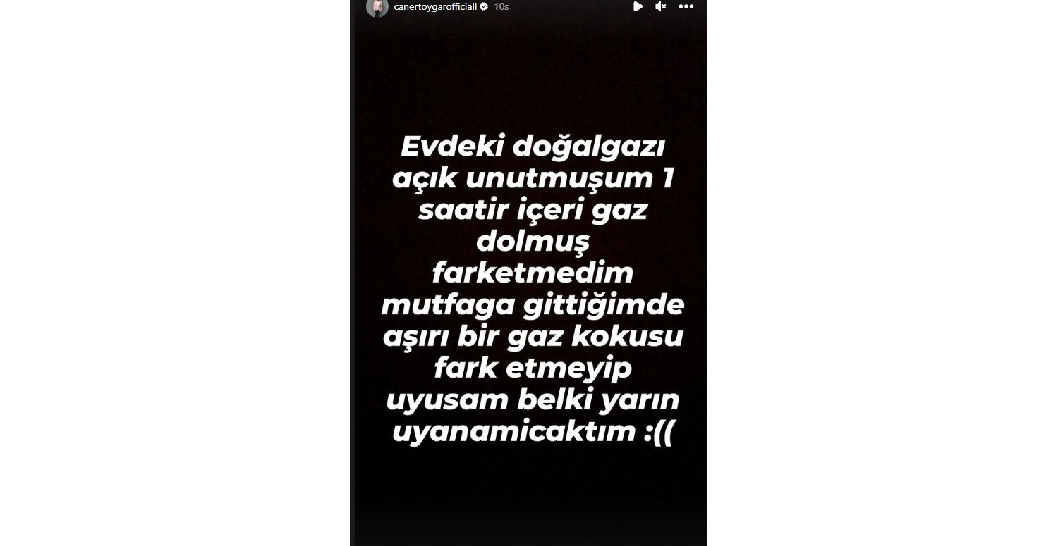 Toygar paylaşımında; " evdeki doğal gazı açık unutmuşum. 1 saattir içeri gaz dolmuş fark etmedim mutfağa gittiğimde anladım. Fark etmeyip uyusam belki yarın uyanamayacaktım.