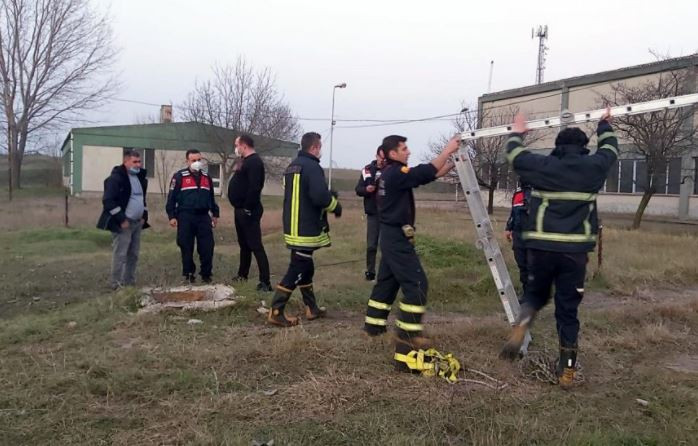 Tesis bahçesinde bulunan ağzı açık fosseptiğe bakan bekçiler, bir kişiyi hareketsiz görünce durumu 112 Acil’e bildirdi.