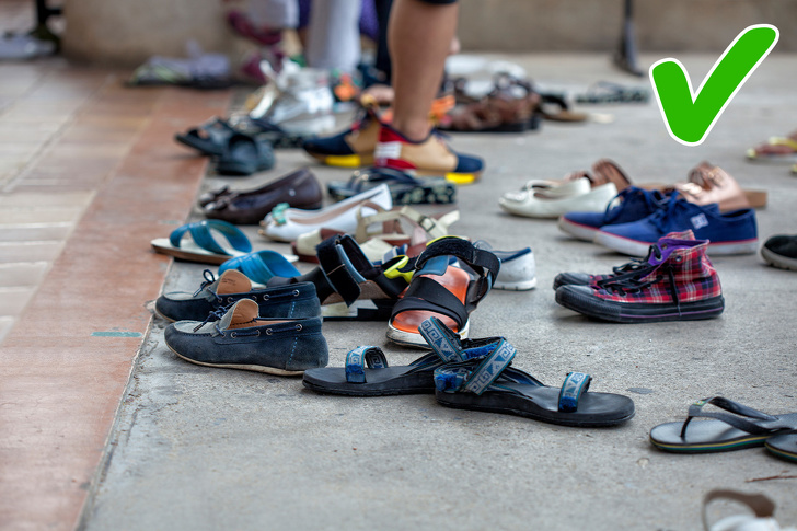 Hint tapınaklarının veya evlerinin içine ayakkabı ile girmeyin. bir tapınağa veya birinin evine girerken ayakkabılarını çıkarman gerekiyor .