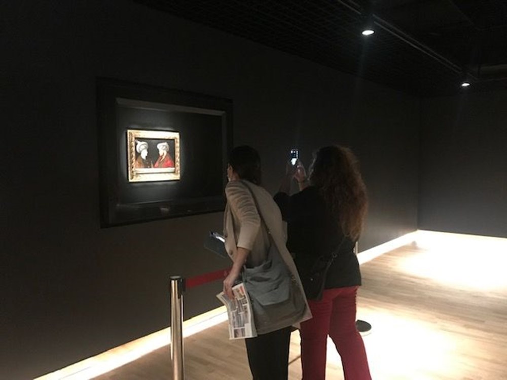 Hes kodu kontrolü ve ateş ölçümü ile içeri alınan ziyaretçiler, sergi salonunu gezerek tablo ile hatıra fotoğrafı çektirdi.