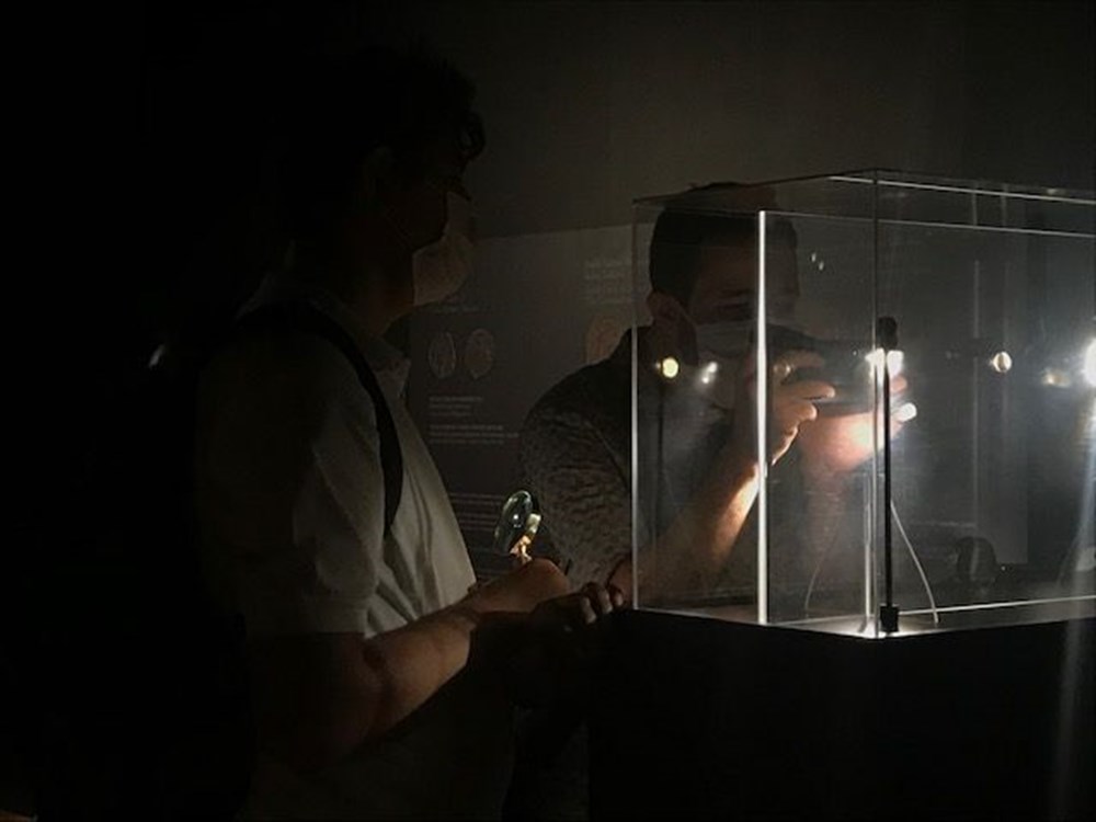 Tabloyu görmeye gelenler sikkelere de yoğun ilgi gösterdi. ziyaretçiler sikkeleri büyüteçlerle inceledi.