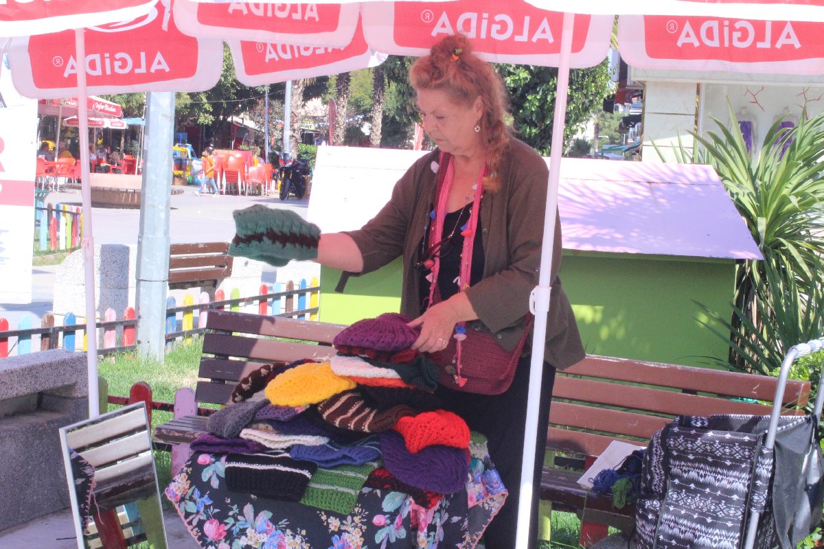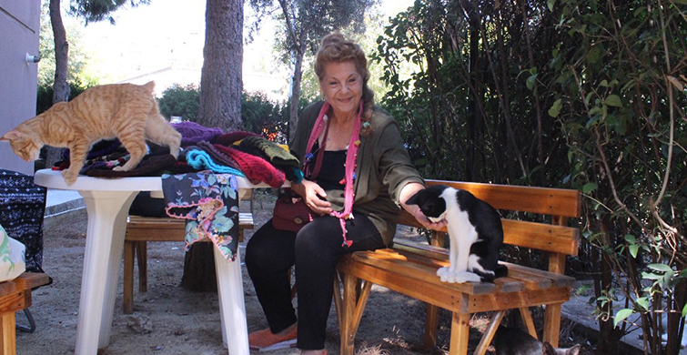 Usta oyuncu Fatma Belgen, sokak hayvanlarına destek olmak için elleriyle ördüğü bereleri pazarda satmaya başladı.