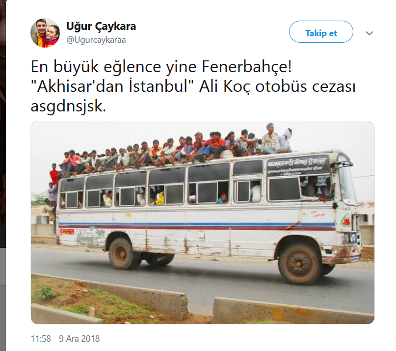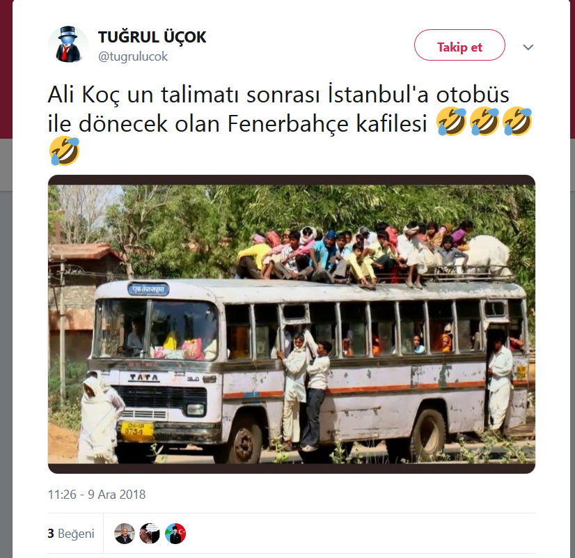 Fenerbahçe'nin 3-0 kaybettiği akhisarspor maçı sonrası küme düşme potasına girmesi ve ali koç'un takıma otobüs ile istanbul'a dönme cezası vermesi ardından sosyal medya yıkıldı.