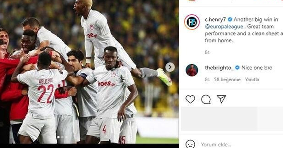 İstanbul'da oynanan maçın ardından bir paylaşımda bulunan Nijeryalı futbolcu Henry Onyekuru, sosyal medyadan yaptığı paylaşımda, "Avrupa Ligi'nde bir diğer önemli zafer. Harika takım performansı ve deplasmanda gol yemeden bitirilen bir maç" ifadelerine yer verdi. Futbolcunun bu paylaşımı sonrası Galatasaray formasını terleten Ryan Babel'den dikkat çeken bir hamle geldi. Hollandalı futbolcu Ryan Babel, Onyekuru'nun paylaşımının altına beğeni işareti yaptı.