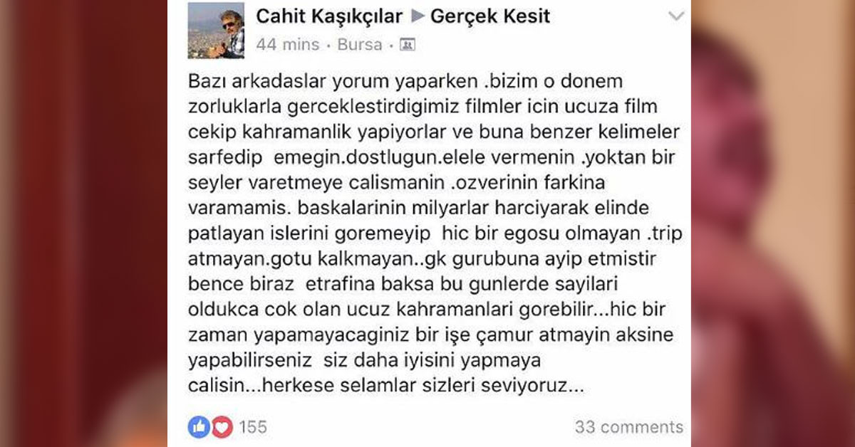 Mesnetsiz eleştirilere Facebook sayfası üzerinden zamanında verdiği şöyle nezaket dolu bir cevabı bile var.