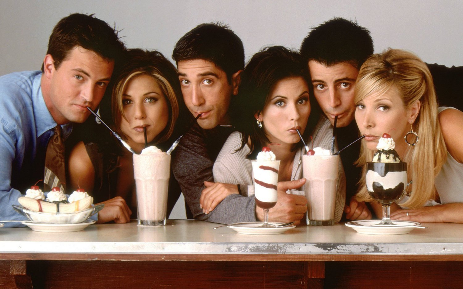 Dizinin oyuncuları jennifer aniston, courteney cox, lisa kudrow, lisa kudrow, matt leblanc ve david schwimmer yer almaktadır.