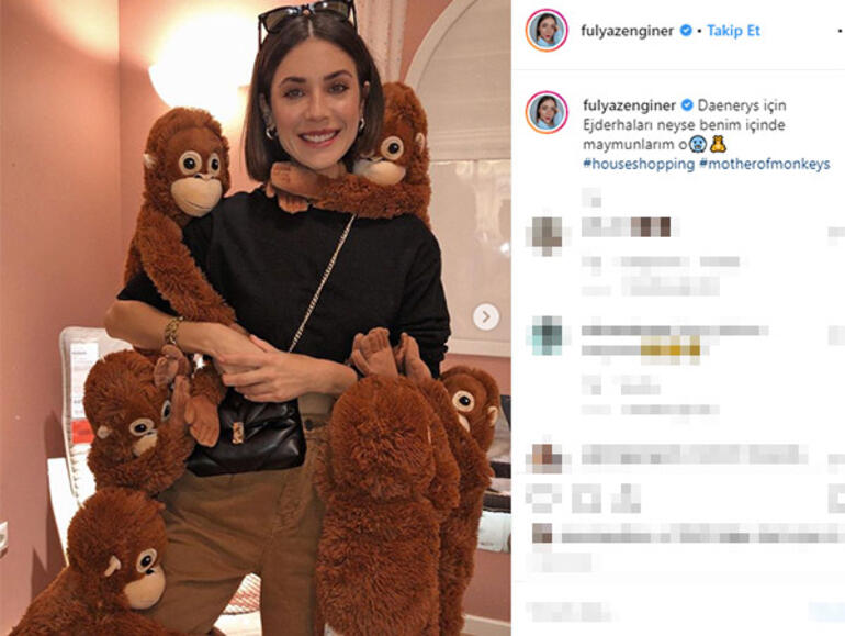 Fulya zenginer ise paylaşımına "daenerys için ejderhaları neyse benim içinde maymunlarım o" notunu düşerek efsane dizi game of thrones'a esprili bir gönderme yaptı.