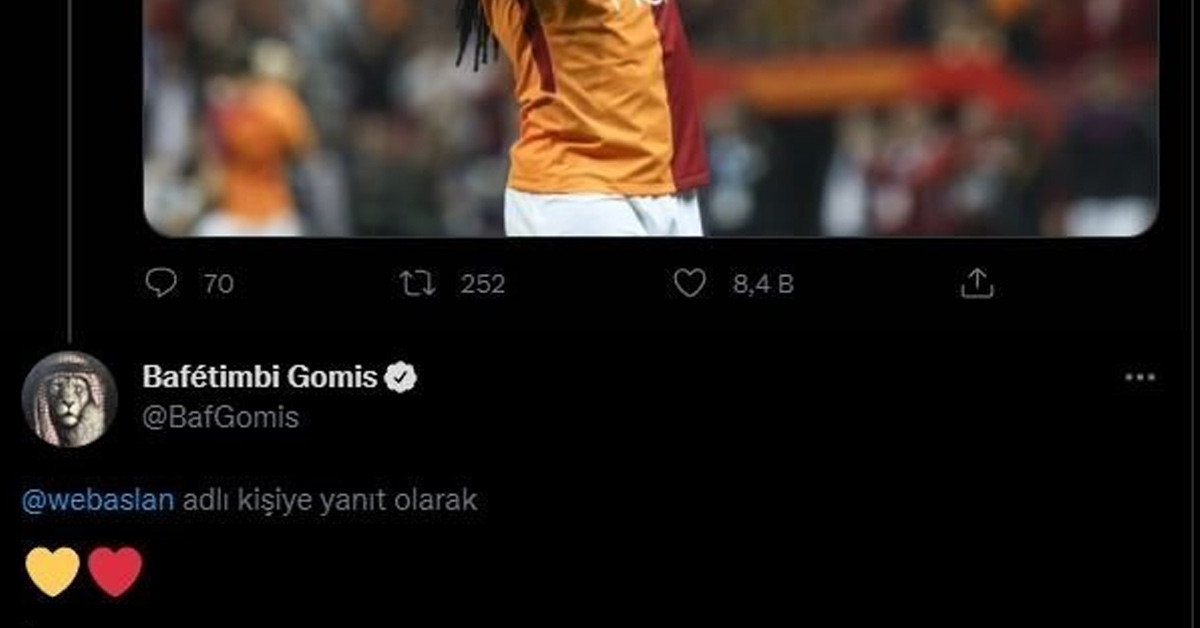 Galatasaray'ın yeniden transfer listesinde olan Bafetimbi Gomis, sosyal medyadan sarı kırmızılı taraftarları oldukça heyecanlandırdı. Sarı kırmızılıların devre arasında transfer gündemine gelen Gomis, sosyal medya hesabından, 'Seni çok özledik Bafetimbi Gomis' şeklindeki paylaşıma sarı ve kırmızı kalpler atarak cevap verdi.