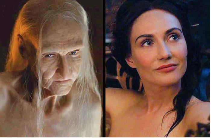 Melisandre kolyesini çıkardığında yaşlanır. ancak bu sefer kolye olmadığı halde genç görünüyor.